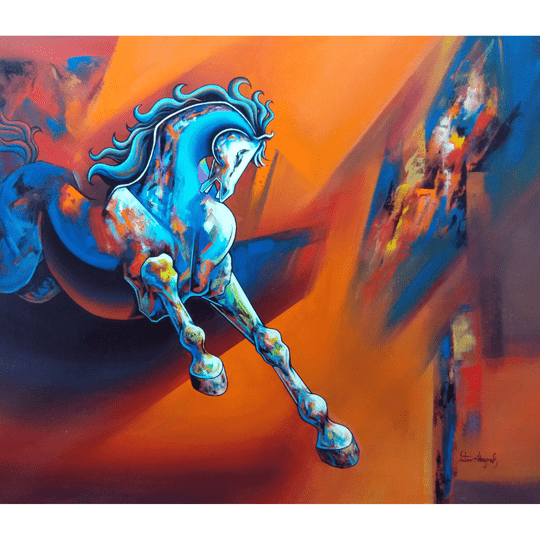 I like to fill my art with vibrant colour scheme. I like to show the game of shades from light to dark. This enlightens my painting. I love to show a signature effect, it differs from painting to painting. One can feel the rhythm, strokes and texture in my art. All elements compliments each other and as well paintings emerge with that energy and positiveness and spirit. I studied Horses and made sketches to bring them live in paintings, he use contemporary colour scheme in paintings. Textures results are simply application of brush strokes. As each layer of colour blends seems communicating with each other, it is playing major role in painting. Use of circular and straight lines ruling their role of grace and rhythm, beauty and connectivity. Background strokes and colours mixing shows horse speed and beauty. It is said that in Vastu Shastra and feng shui, Paintings of Horse brings positivity and prosperity.