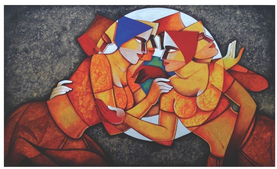 Nawal Kishor, Life on Moon, Acrylic on Canvas, 30×60 inches